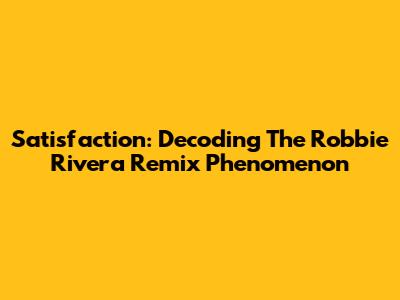 Satisfaction: Decoding The Robbie Rivera Remix Phenomenon