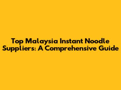 Top Malaysia Instant Noodle Suppliers: A Comprehensive Guide