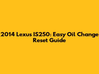 2014 Lexus IS250: Easy Oil Change Reset Guide