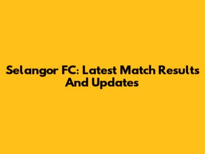 Selangor FC: Latest Match Results And Updates