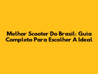 Melhor Scooter Do Brasil: Guia Completo Para Escolher A Ideal
