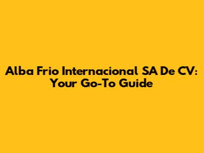 Alba Frio Internacional SA De CV: Your Go-To Guide