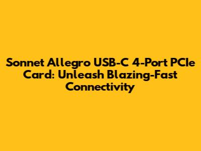 Hey everyone! Today, we're diving deep into the Sonnet Allegro USB-C 4-Port PCIe Card, a super cool gadget designed to seriously juice up your computer's connectivity game. If you're a creative pro, a tech enthusiast, or just someone who wants faster data transfer speeds, stick around! We're gonna break down everything you need to know about this PCIe card, from its awesome features to how it can transform your workflow. Let's get started, shall we?
