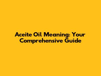 Aceite Oil Meaning: Your Comprehensive Guide