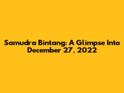 Samudra Bintang: A Glimpse Into December 27, 2022