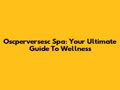 Oscperversesc Spa: Your Ultimate Guide To Wellness
