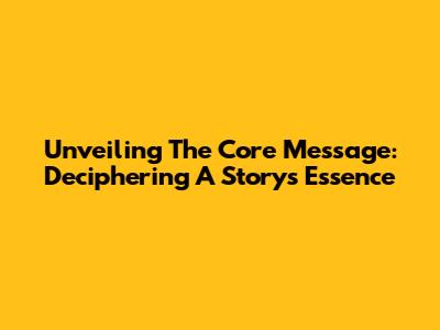 Unveiling The Core Message: Deciphering A Story's Essence