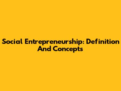 Social Entrepreneurship: Definition And Concepts