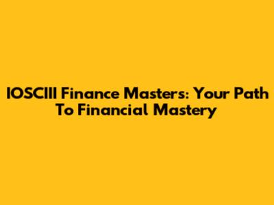 IOSCIII Finance Masters: Your Path To Financial Mastery
