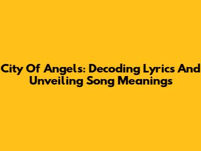 City Of Angels: Decoding Lyrics And Unveiling Song Meanings