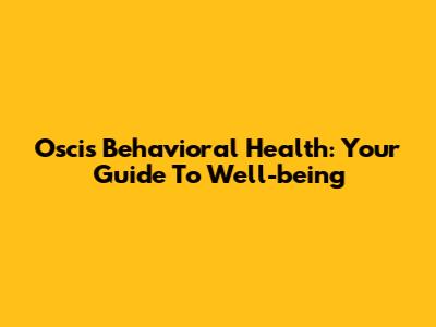 Oscis Behavioral Health: Your Guide To Well-being
