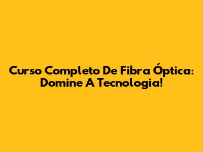 Curso Completo De Fibra Óptica: Domine A Tecnologia!