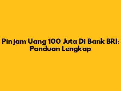 Pinjam Uang 100 Juta Di Bank BRI: Panduan Lengkap