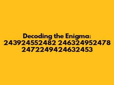 Hey guys! Ever stumbled upon something so cryptic it felt like you needed a secret decoder ring? Well, that's exactly how I felt when I first encountered the sequence 243924552482 246324952478 2472249424632453. It's like a digital fingerprint, a mysterious code begging to be deciphered. My mission? To unravel this enigma and share my findings with you in a way that’s both informative and, dare I say, fun.