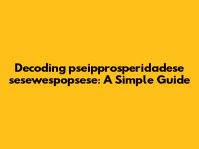 Alright, guys, let's dive into this intriguing string of characters: pseipprosperidadese sesewespopsese. It looks like a jumble, right? But don't worry, we're going to break it down and figure out what's going on. The goal here is to make sense of something that, at first glance, seems totally nonsensical. We'll explore potential meanings, origins, and even how you might use something like this creatively. Understanding this kind of stuff can be super useful, especially in fields like cryptography, linguistics, or even just for creating unique passwords and usernames. So, buckle up, and let’s get started!