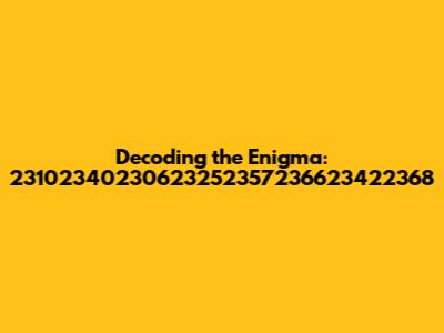 Hey guys! Ever stumbled upon a string of numbers that just makes you scratch your head? Today, we’re diving deep into one such mystery: 23102340230623252357236623422368. What does it mean? Where does it come from? Is it some secret code? Let's break it down and see if we can unravel this numerical knot.