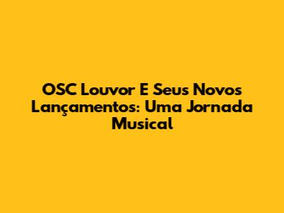 OSC Louvor E Seus Novos Lançamentos: Uma Jornada Musical