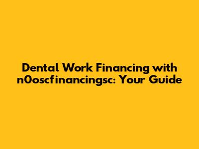 Hey guys, let's talk about something super important – taking care of your teeth! We all know that dental work can sometimes be a bit of a wallet-buster, right? But the good news is, there are ways to make it more manageable. Today, we're diving into n0oscfinancingsc and how it can help you finance your dental work. Getting those pearly whites fixed or spruced up shouldn't break the bank, and with the right information, it doesn't have to!