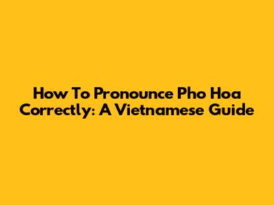How To Pronounce Pho Hoa Correctly: A Vietnamese Guide