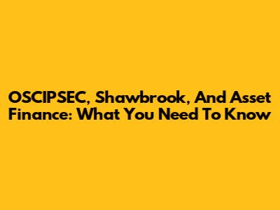 OSCIPSEC, Shawbrook, And Asset Finance: What You Need To Know
