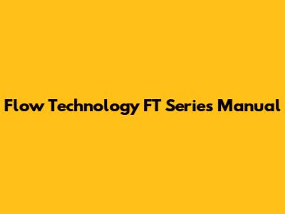 What is the Flow Technology FT Series Manual?