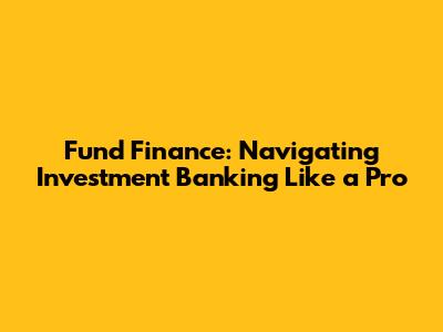 Hey guys! Ever wondered how fund finance and investment banking actually play together? Well, buckle up because we're diving deep into this fascinating intersection. Understanding fund finance is crucial, especially if you're aiming to make waves in the investment banking world. It's not just about crunching numbers; it’s about understanding the intricate dance between capital calls, leverage, and investor returns. Let's break it down and see how you can navigate this terrain like a seasoned pro.