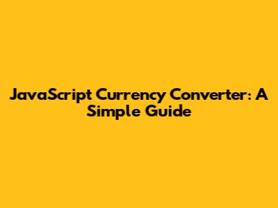 JavaScript Currency Converter: A Simple Guide