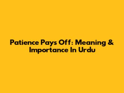 Patience Pays Off: Meaning & Importance In Urdu