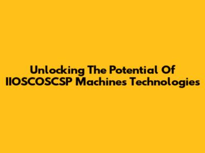 Unlocking The Potential Of IIOSCOSCSP Machines Technologies