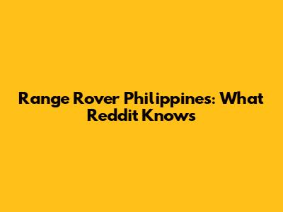Range Rover Philippines: What Reddit Knows