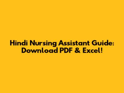 Hindi Nursing Assistant Guide: Download PDF & Excel!