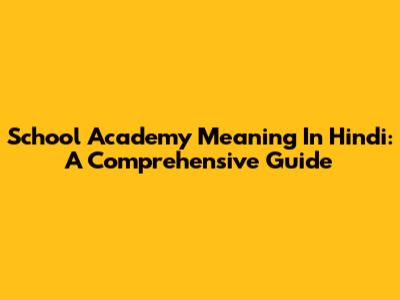 School Academy Meaning In Hindi: A Comprehensive Guide