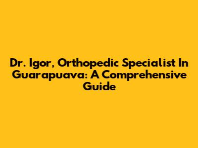 Dr. Igor, Orthopedic Specialist In Guarapuava: A Comprehensive Guide