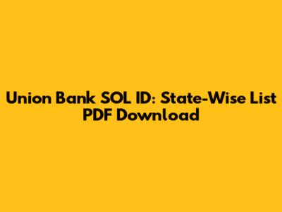 Union Bank SOL ID: State-Wise List PDF Download