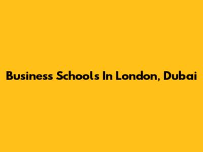 Business Schools In London, Dubai