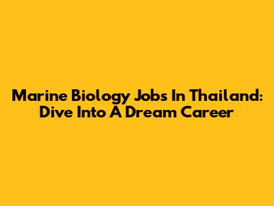 Marine Biology Jobs In Thailand: Dive Into A Dream Career