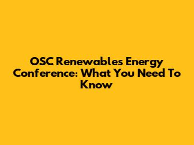 OSC Renewables Energy Conference: What You Need To Know