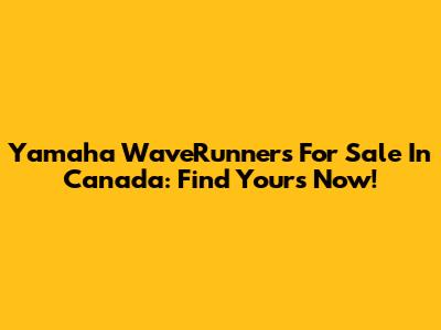 Yamaha WaveRunners For Sale In Canada: Find Yours Now!