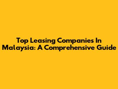 Top Leasing Companies In Malaysia: A Comprehensive Guide