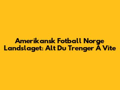 Amerikansk Fotball Norge Landslaget: Alt Du Trenger Å Vite