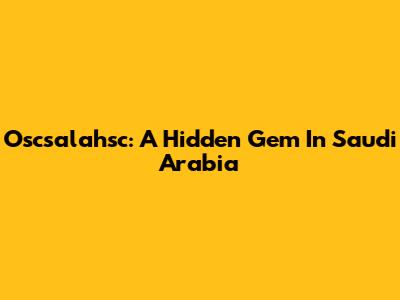 Oscsalahsc: A Hidden Gem In Saudi Arabia