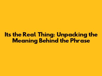 Ever heard someone say, "It's the real thing!" and wondered what they actually meant? Guys, this phrase is way more than just a catchy slogan; it's packed with layers of meaning and implications. Let's dive deep into the world of "It's the Real Thing" to truly understand its essence, origins, and how it resonates in our daily lives.