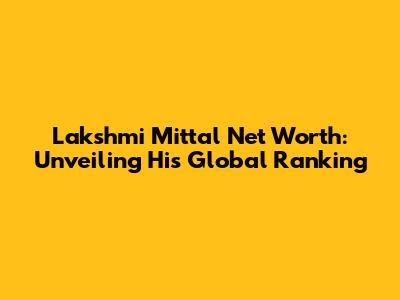 Lakshmi Mittal Net Worth: Unveiling His Global Ranking