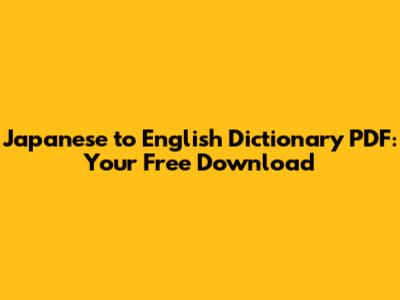 - Cost-Effective: Many high-quality Japanese to English dictionaries are available as free PDFs, saving you money while still providing valuable resources.