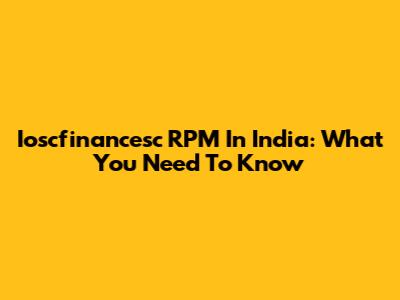 Ioscfinancesc RPM In India: What You Need To Know