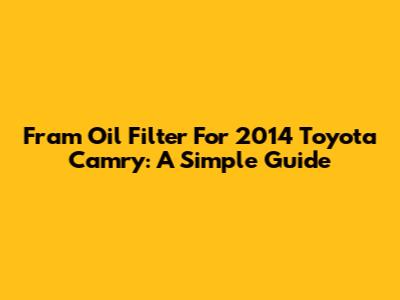 Fram Oil Filter For 2014 Toyota Camry: A Simple Guide