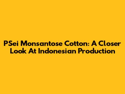 PSei Monsantose Cotton: A Closer Look At Indonesian Production