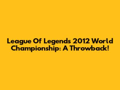 League Of Legends 2012 World Championship: A Throwback!