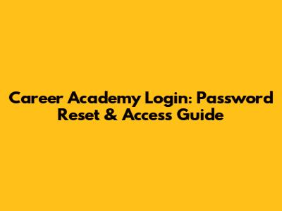 Career Academy Login: Password Reset & Access Guide