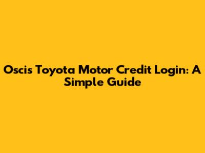 Oscis Toyota Motor Credit Login: A Simple Guide